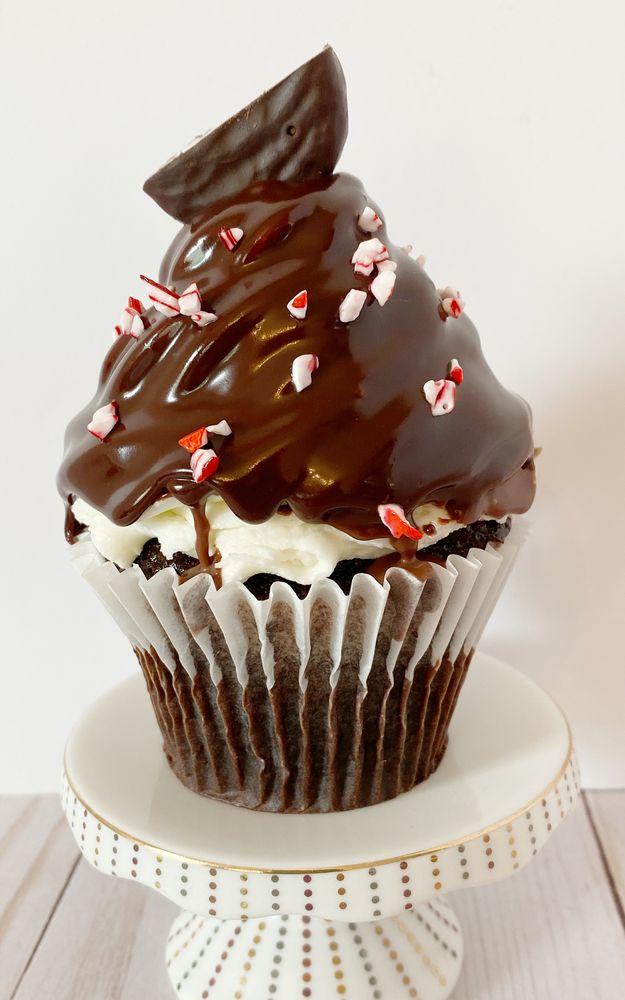 Chocolate cake with cookies & cream buttercream frosting topped with an Oreo cookie.